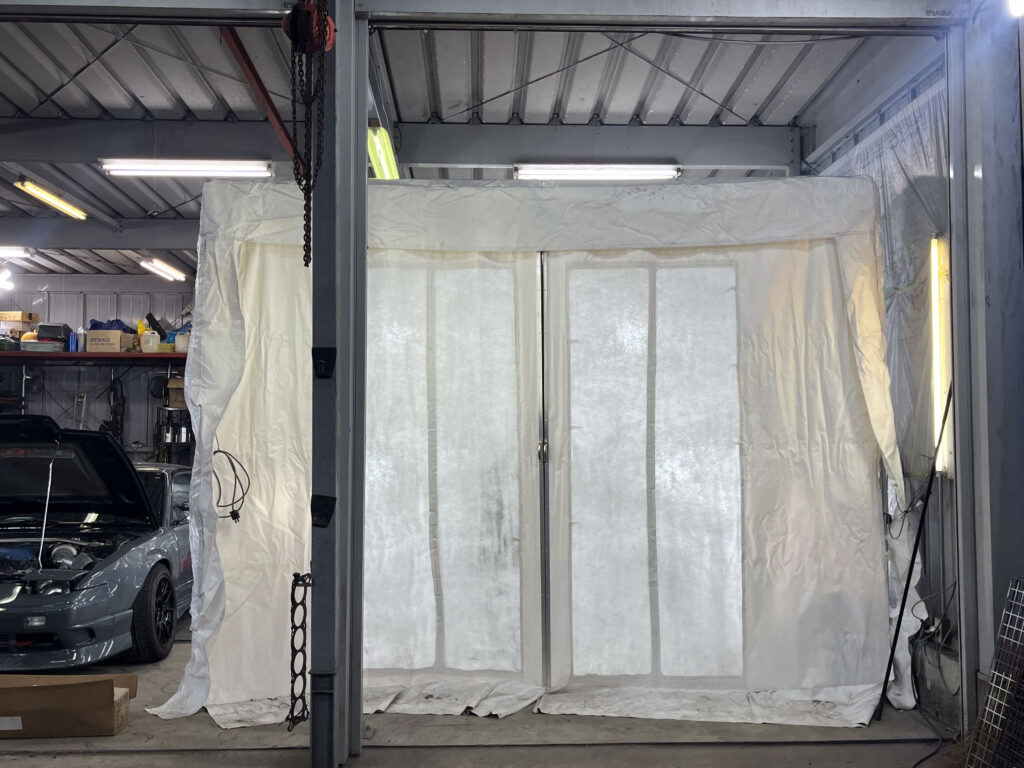 ガレージ右側に本格的な塗装専用ブースを設置しました!!