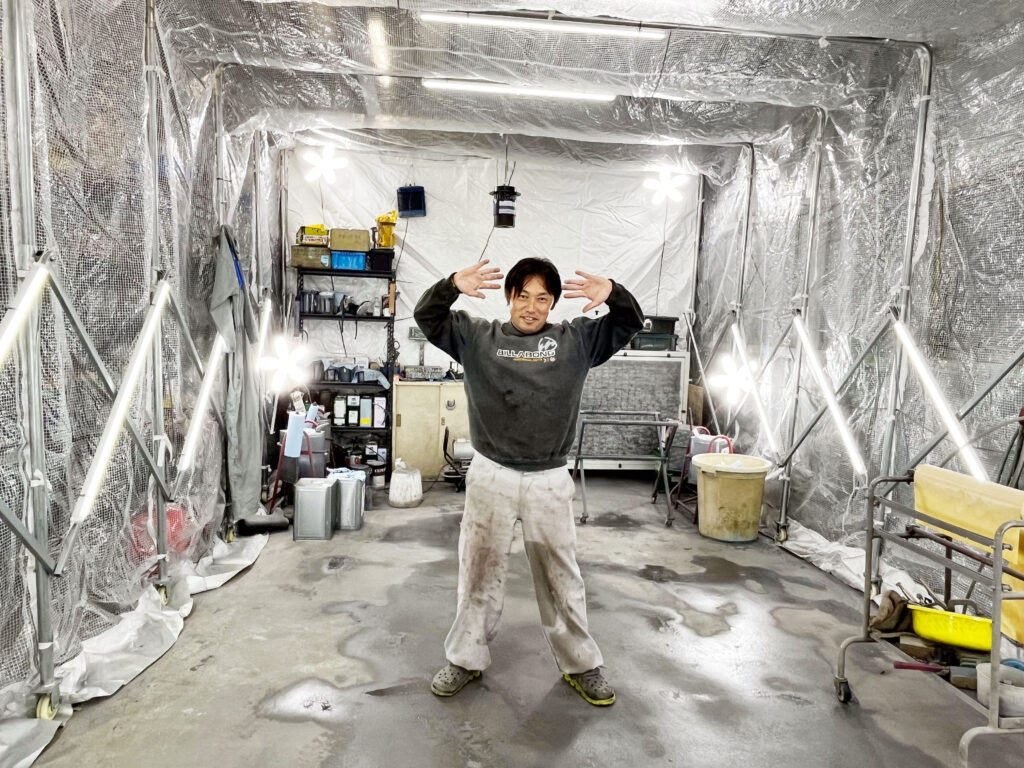 これまでの自作ブースに比べてゴミの付着や明るさ、結露トラブルが大幅に改善され、これまで以上に効率的にクオリティの高い塗装ができるようになっています。