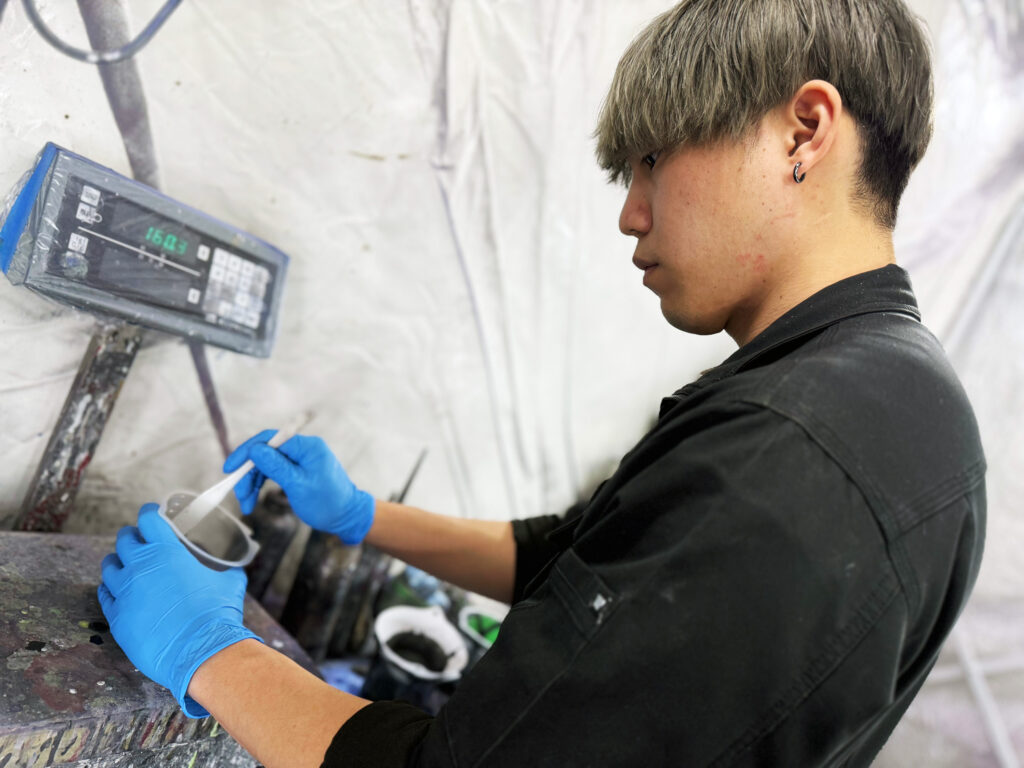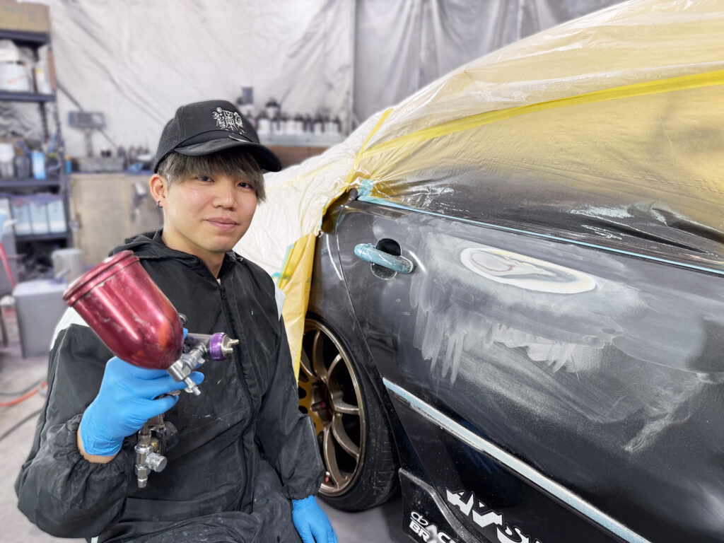 新井と共に2026年4月よりGスタイルに加入した、鈑金塗装歴3年目のフレッシュな若手スタッフ。作業の中でも特に色の調合を得意とし、現車に合わせた微調整で色を仕上げる工程にやりがいを感じている。鈑金塗装以外にも様々な作業を請け負うショップだからこそ、「いつかは一から車を作れる存在に」と日々技術を磨いている。